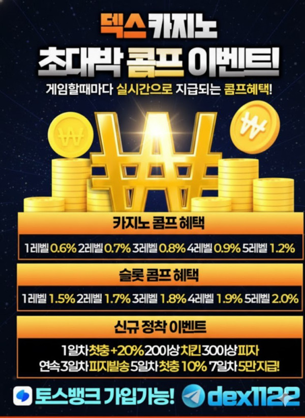 ✨덱스 카지노✨신규 정착 이벤트 진행중✨첫충 20% + 실시간 콤프✨