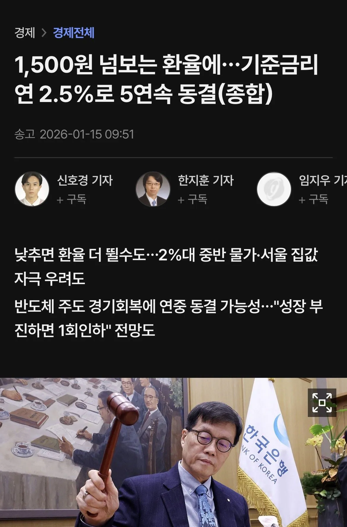 기준금리 연 2.5%로 동결