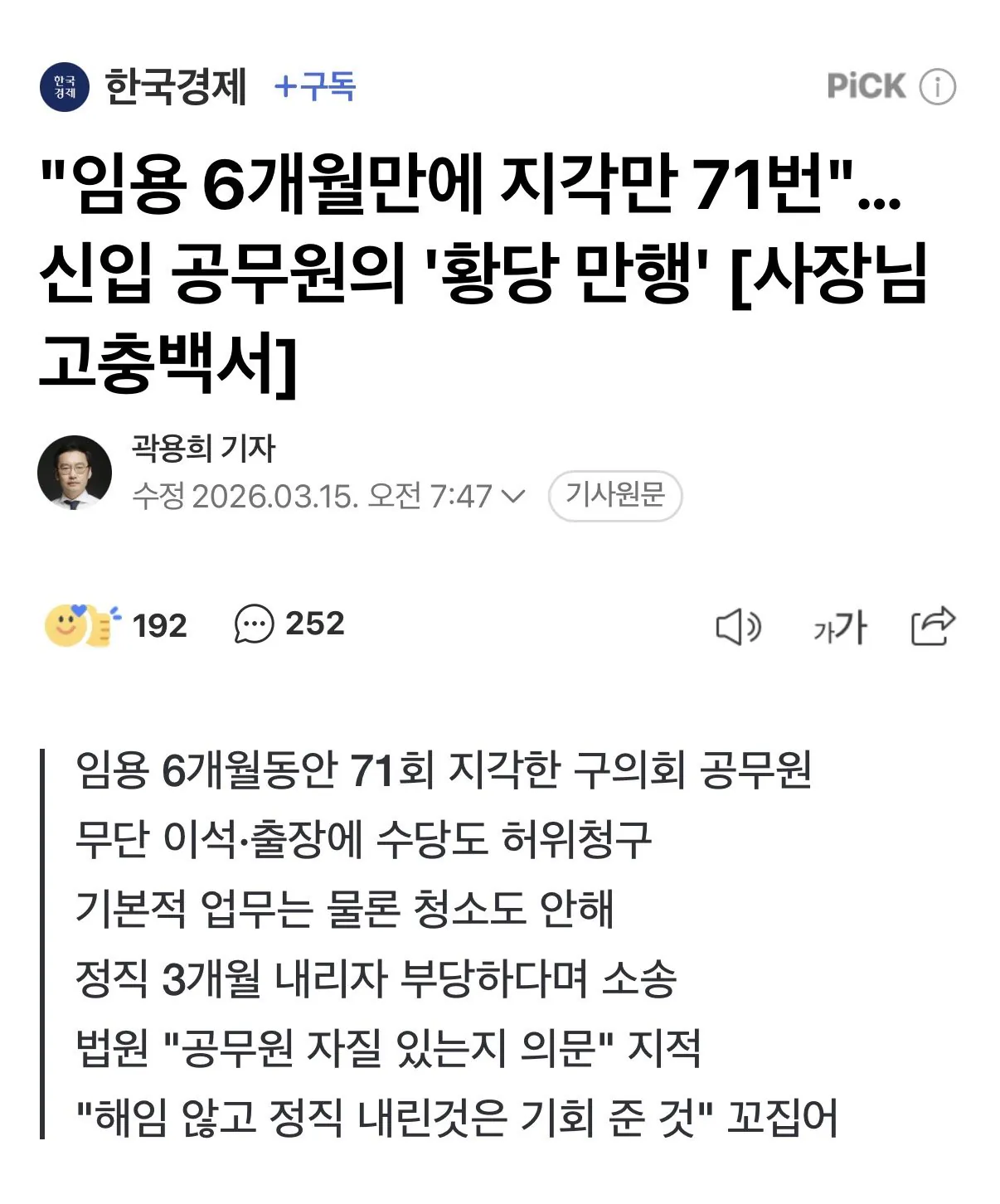 임용 6개월동안 지각만 71번한 MZ 공무원