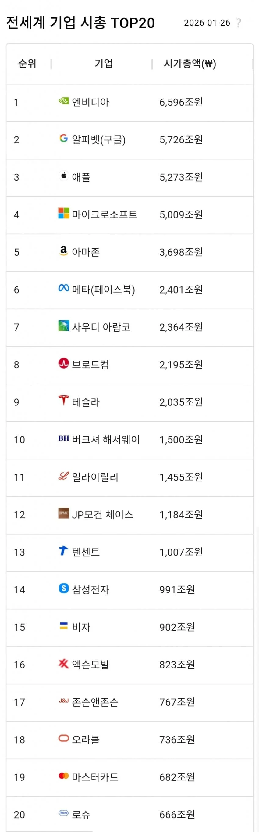 싱글벙글 전세계 기업 시총