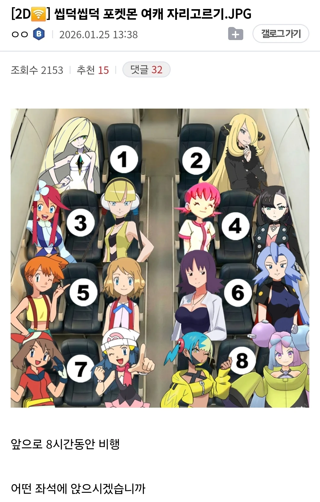 싱글벙글 포켓몬 여캐 자리 고르기