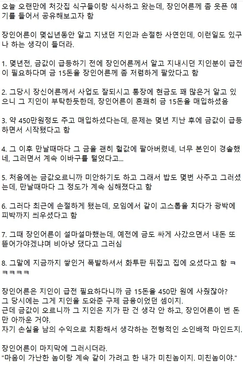 지인을 도와줬는데 앙심을 품음