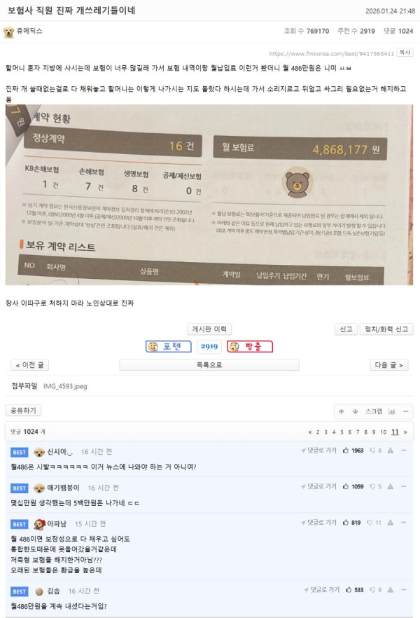 보험사 직원 진짜 개쓰레기들이네