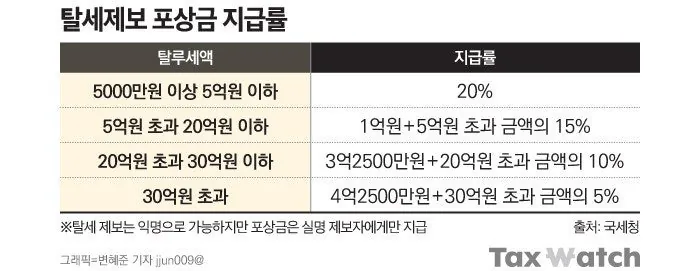 5억 이상 탈세 제보하면 억 단위로 돈 받아감