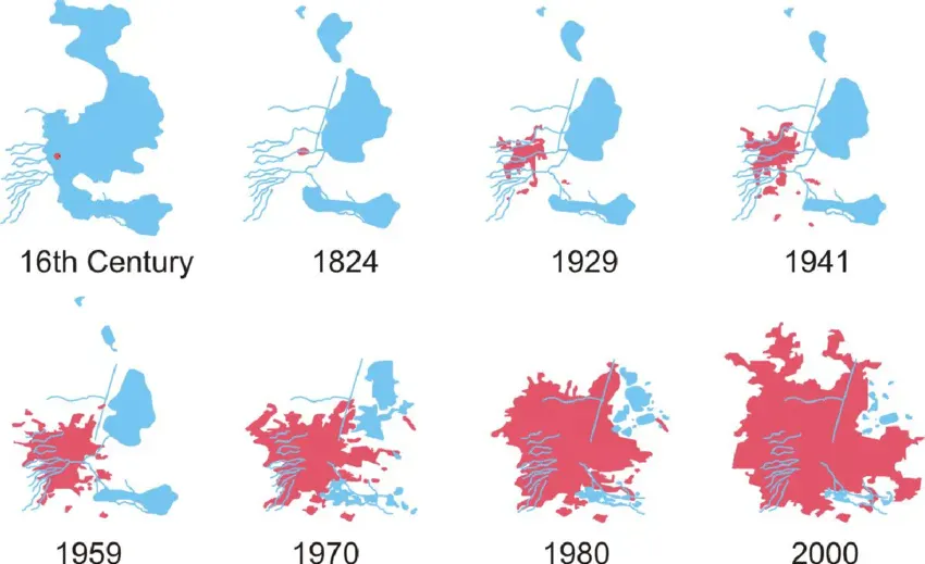 호수를 조금씩 메우며 유럽식 도시를 세워 나갔다.