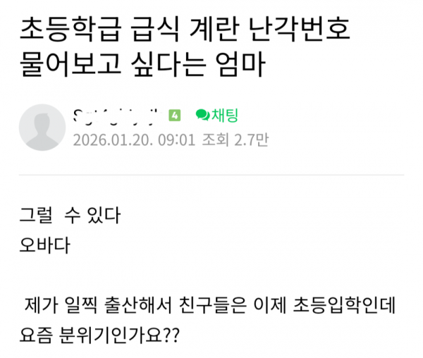 초등학급 급식 계란 난각번호 물어보고 싶다는 학부모