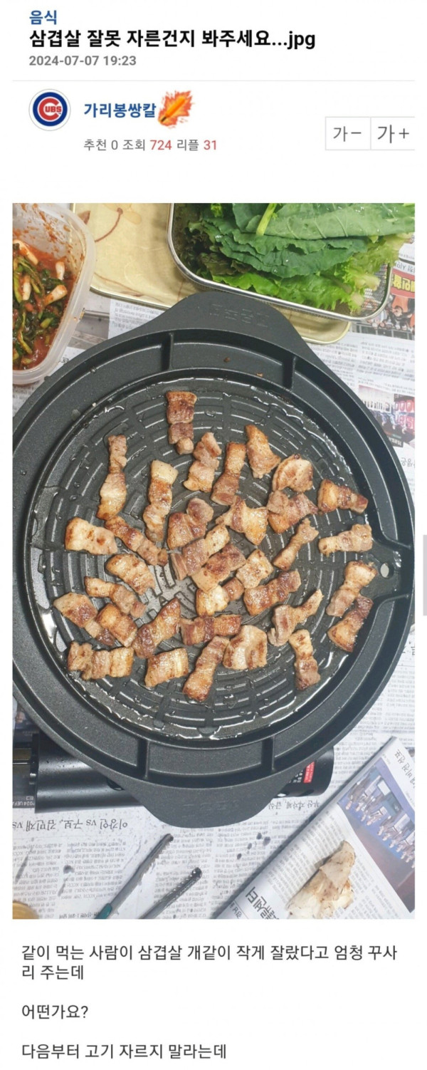 삼겹살 잘못 자른건지 봐주세요