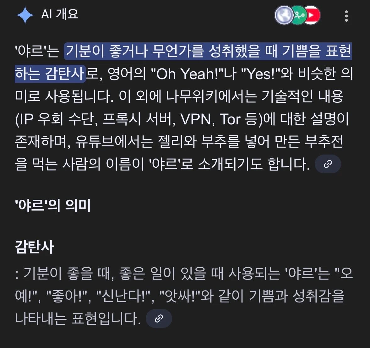 그냥 기분좋을때 감탄사로 쓰인다함