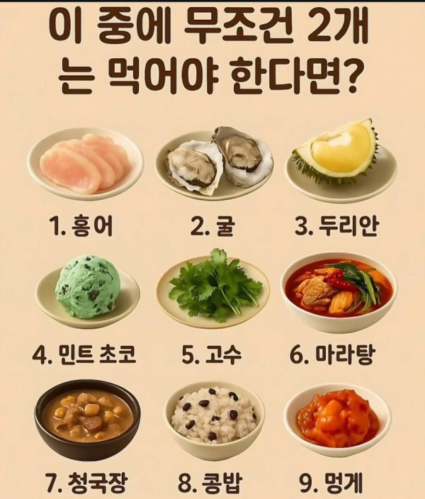 열람중 이 중에 두 개는 무조건 먹어야 한다면? 등급아이콘 레벨아이콘 커뮤관리자 01.21 65