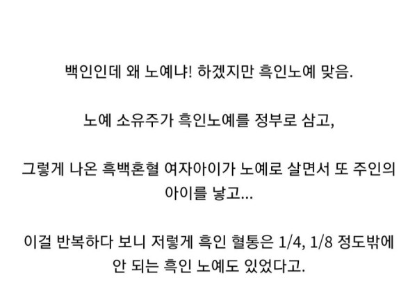 흑인 혈통이 1/4, 1/8까지 희석된 경우엔 사실 생물학적으로 그냥 백인이라 봐도 무방하지만