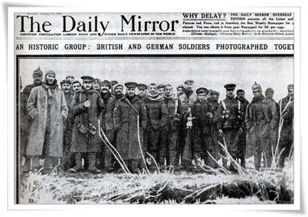 1914년 세계 1차대전 당시 크리스마스 서로 마주보던 독일군, 영국군 서로 휴전하고 축구함