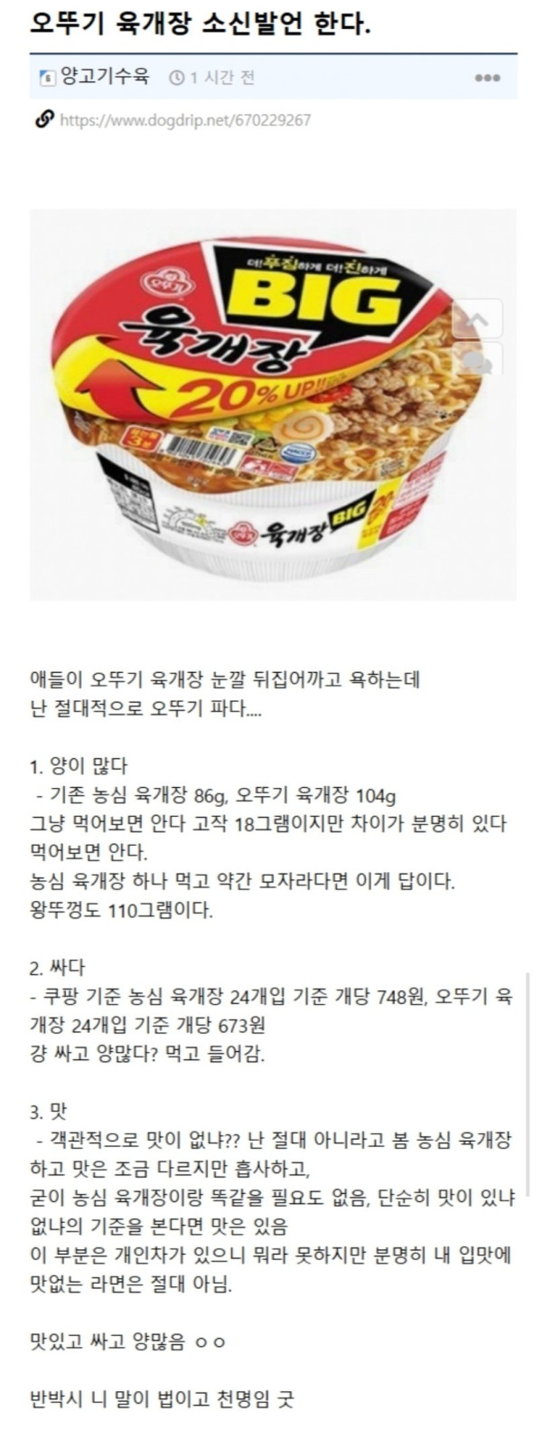 열람중 오뚜기 육개장 소신발언 한다 등급아이콘 레벨아이콘 커뮤관리자 2025.11.25 149