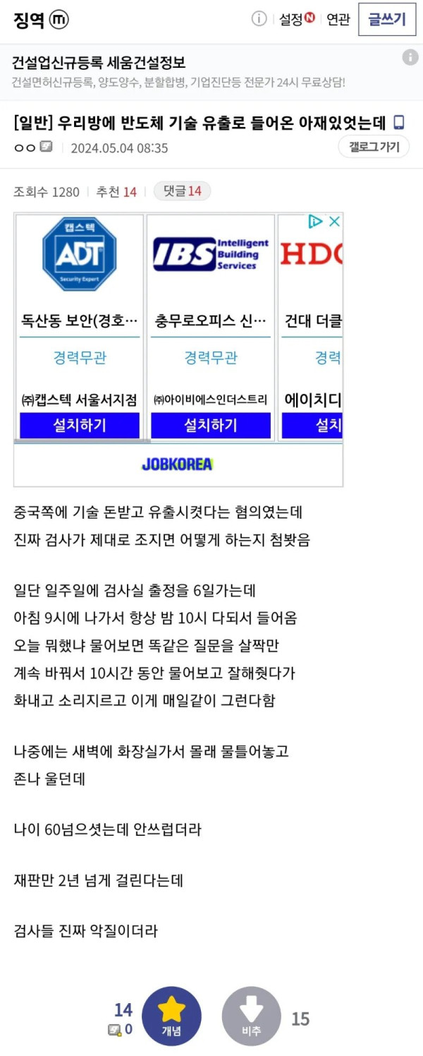 산업스파이랑 교도소 같은방 썼던 썰