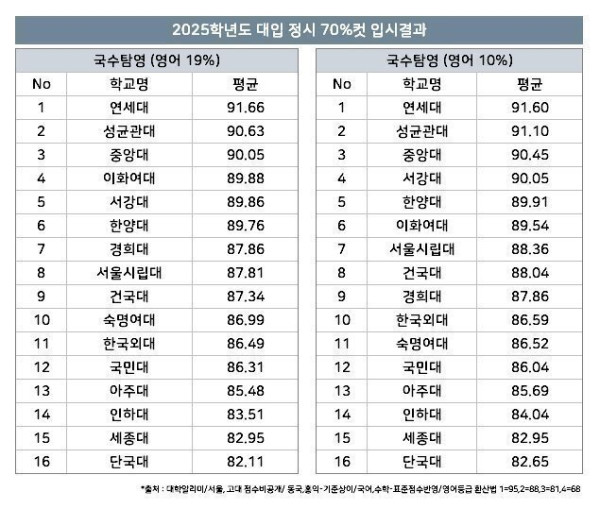 열람중 2025학년도 대입 정시 70%컷 입시결과 등급아이콘 레벨아이콘 커뮤관리자 2025.11.14 160