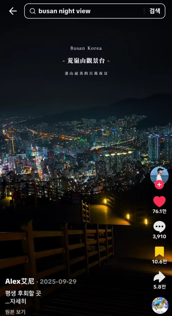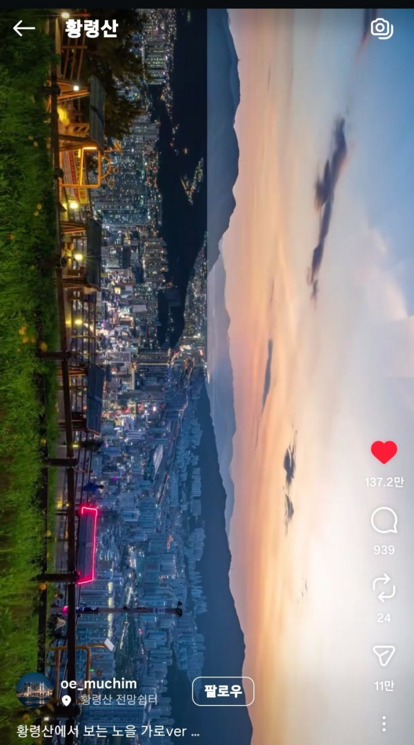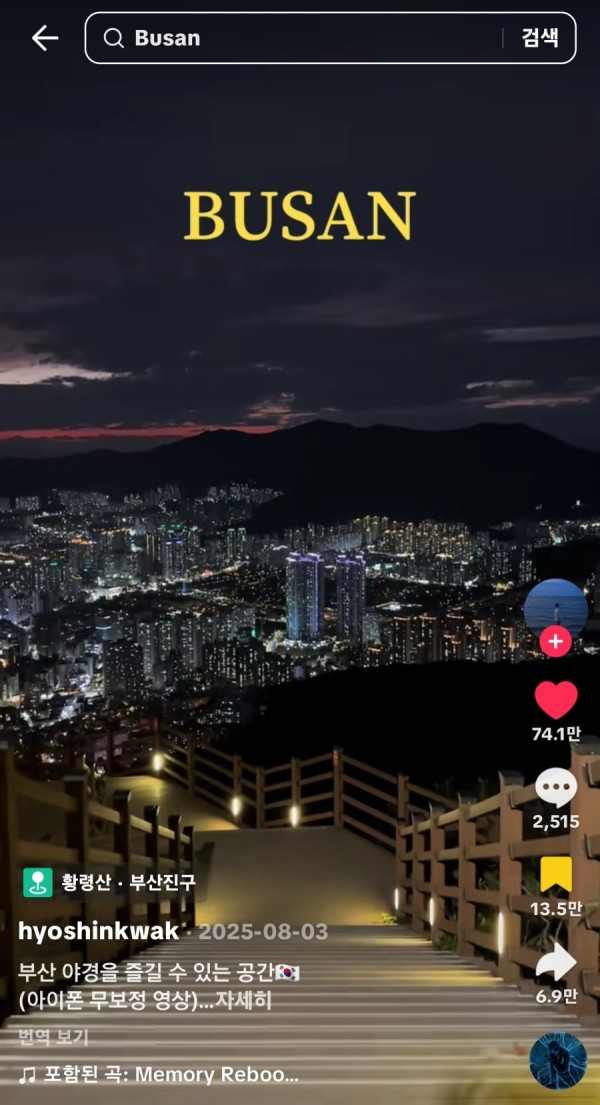 단순 한국 도시 풍경이 100만 이상 추천을 받는건