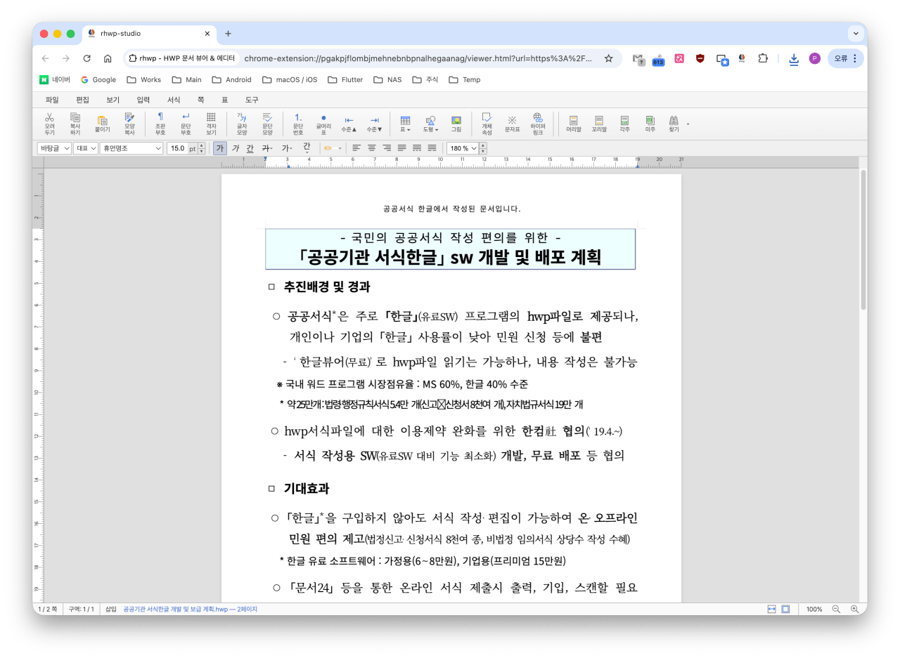크롬 확장 프로그램으로 HWP 편집 및 뷰어 출시