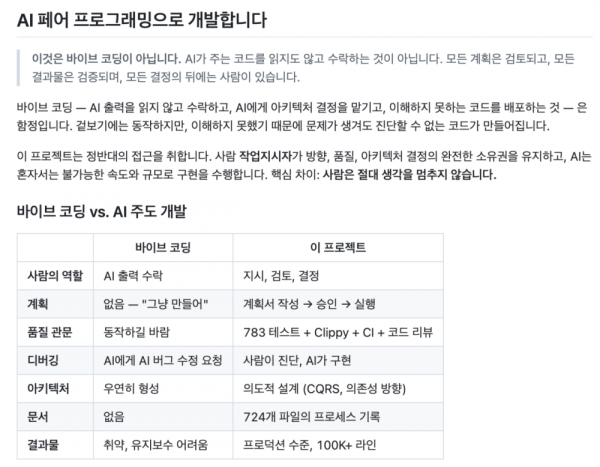 개발자는 AI 바이브코딩이 아니라 AI와 페어프로그래밍을 했다고 하며