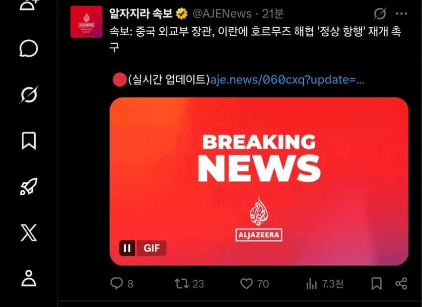 중국 "이란은 빨리 호르무즈 봉쇄 풀고 정상화해라"
