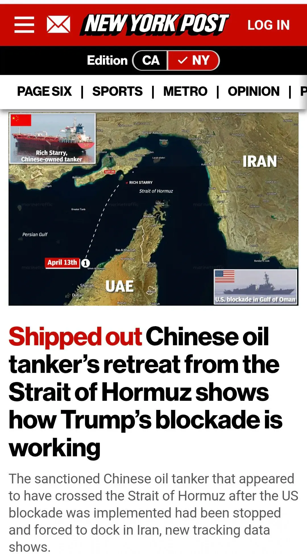 중국으로 항행 예정이였던 유조선이 미국 역봉쇄에 빠꾸 당했다는 소식이 뜨고