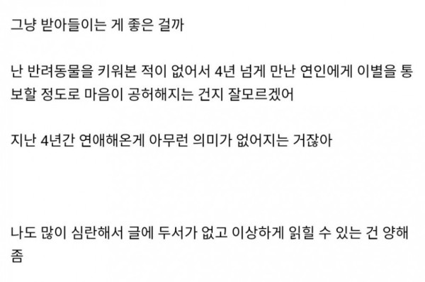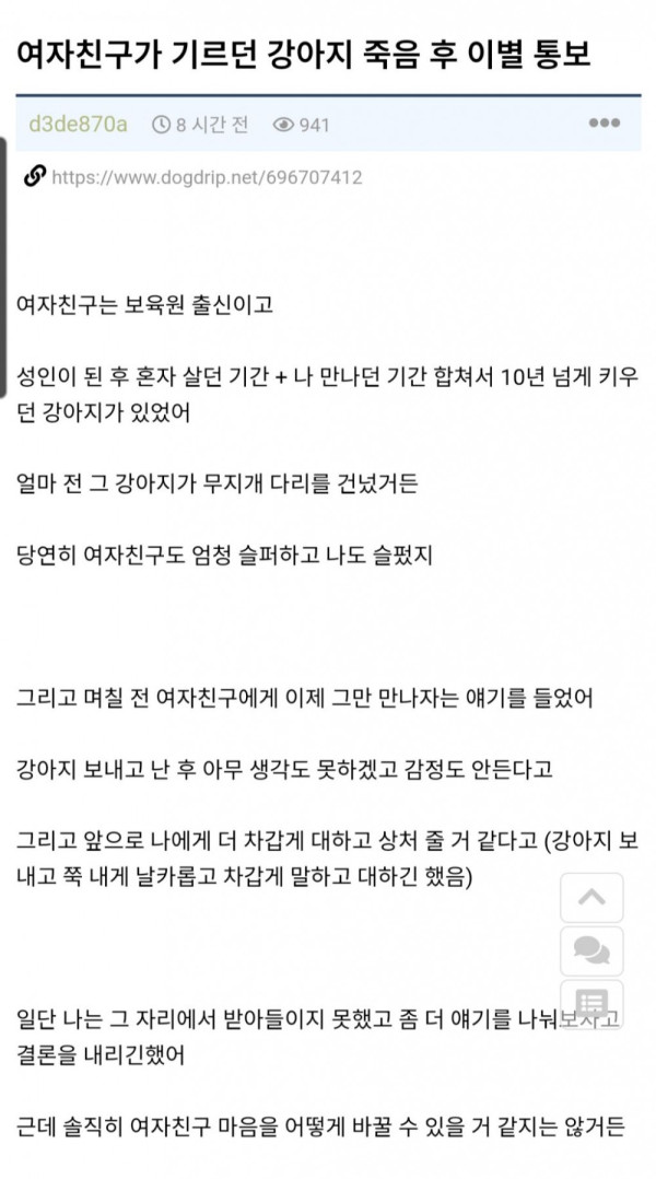 여자친구가 반려견 죽음 이후에 이별통보를 함