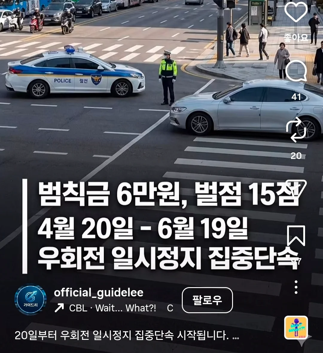 이유불문하고 횡단보도 앞에서 일시정지 후에