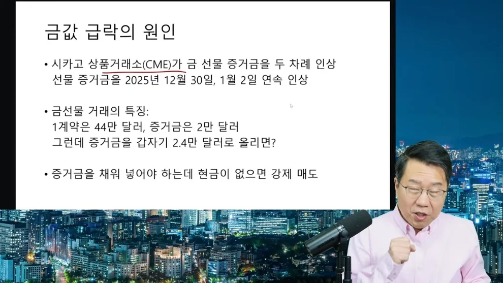 금값이 급락한 이유: 시카고 거래소가 증거금 기준을 갑자기 올려서 투자자들의 매도가 발생했다