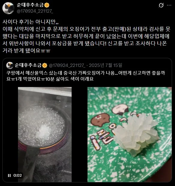 쿠팡에서 팔고 있다는 가짜 오징어