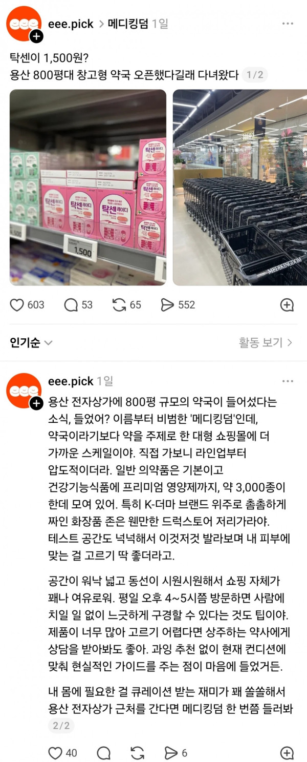 용산에 오픈한 800평대 창고형 약국 약가격