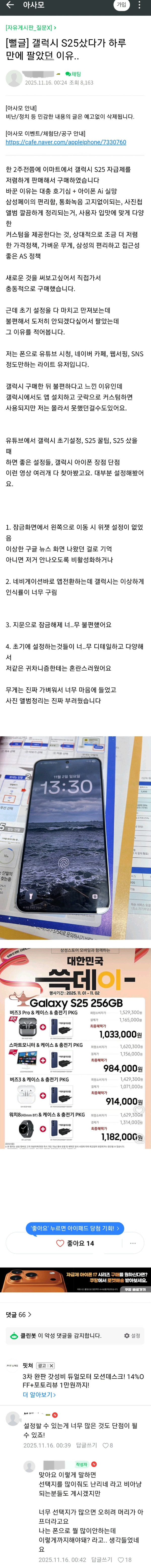 갤럭시 불편해서 하루만에 팔아버린 아이폰 유저