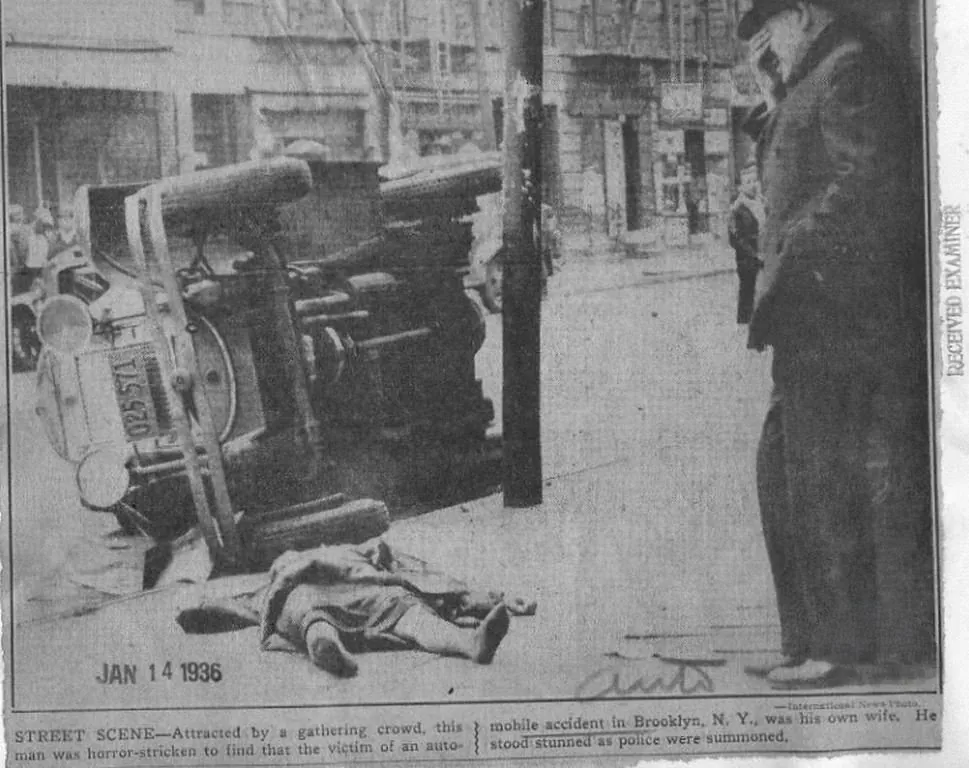 1936년 1월 14일 브루클린에서 교통사고가 났다.