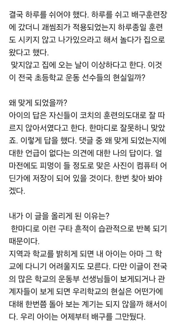 예전 초등학교 운동부 구타 수준 ㅎㄷㄷ