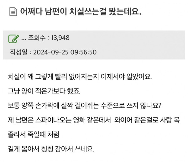 어쩌다 남편이 치실쓰는걸 봤는데요