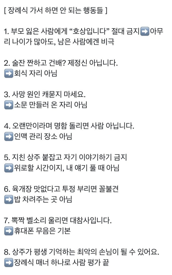 장례식 가서 하면 안 되는 행동들