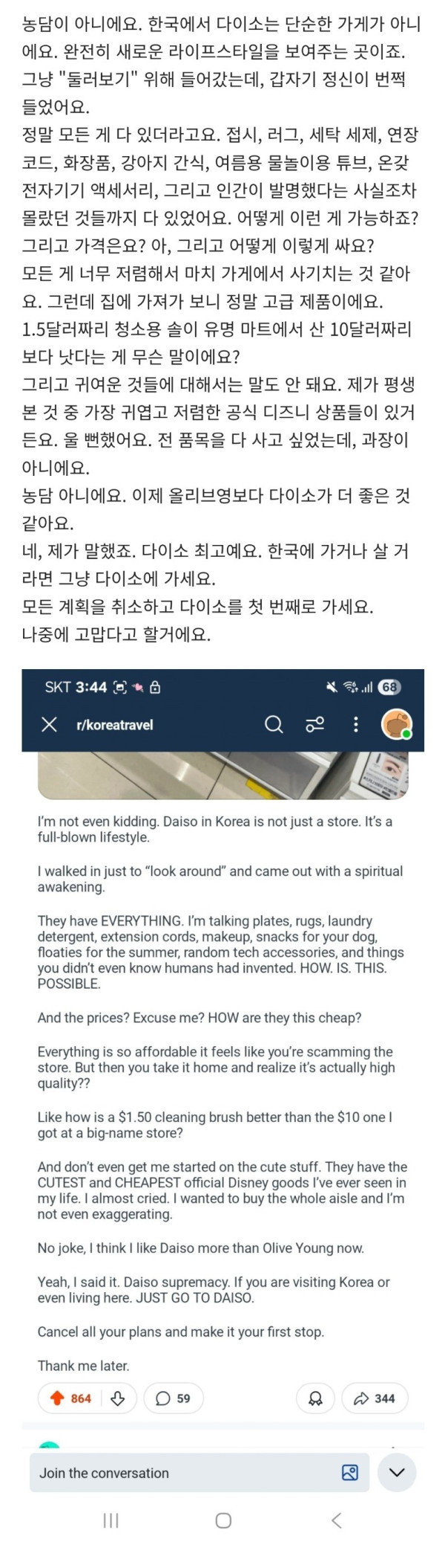 레딧에 외국인 다이소 후기 글