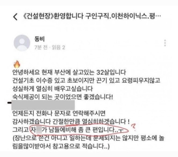 논란의 이천 하이닉스 현장 구인구직 글