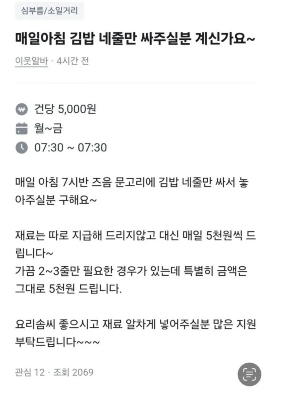 당근마켓에 올라온 건당 5천원짜리 알바 수준