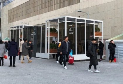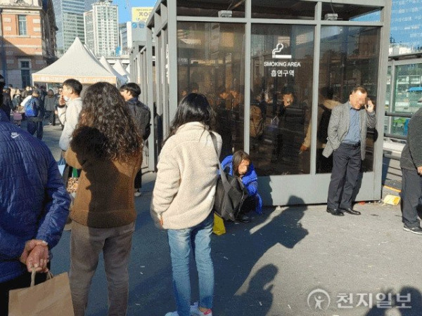 환풍기 설치된 흡연구역이 뻔히 옆에 있는데 밖 통로에서 담배핌