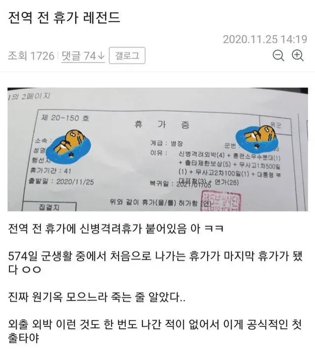 전역 전 휴가 레전드