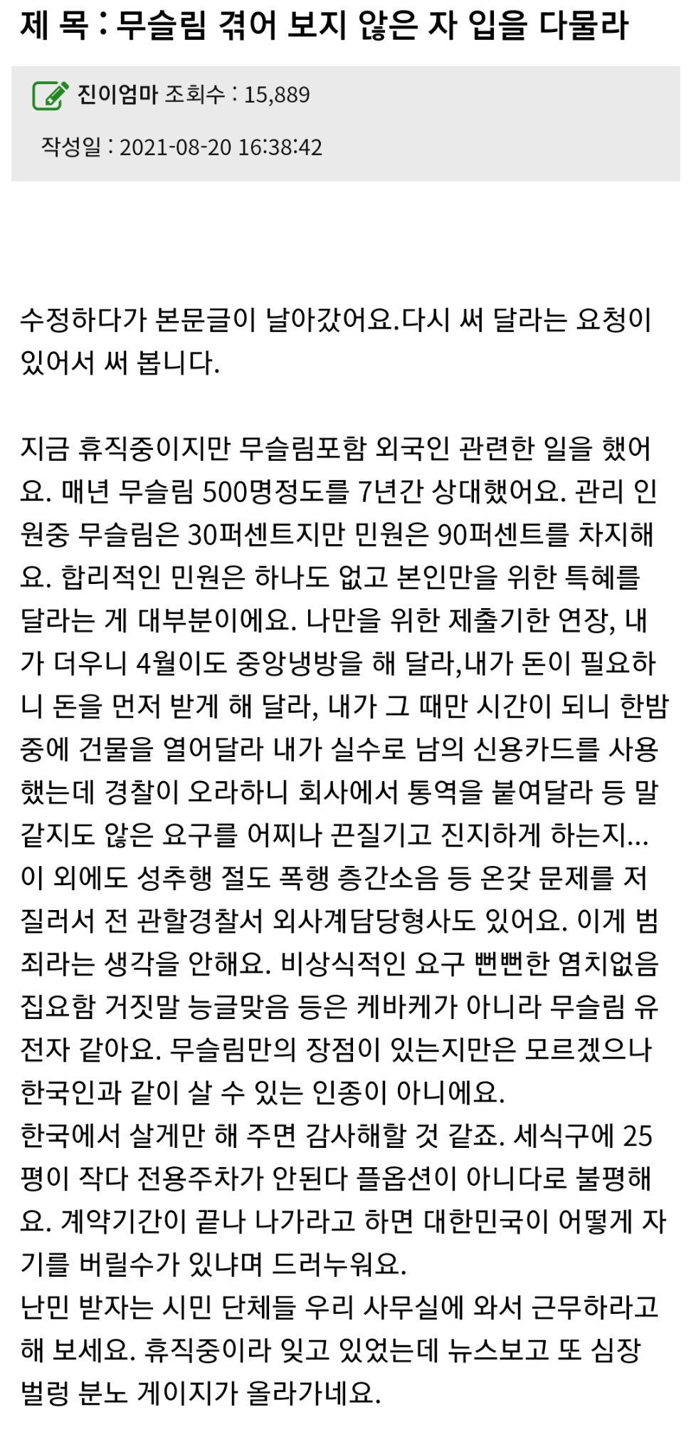 무슬림을 겪어보지 않은자 입을 다물라