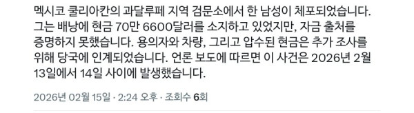 멕시코 한 검문소에서 걸린 남자의 가방속 현금