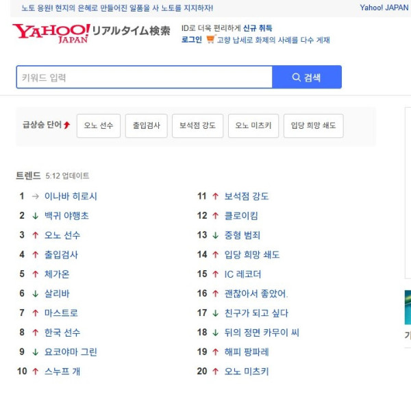 열람중 일본 야후재팬 실시간 검색어 최가온 5위 등급아이콘 레벨아이콘 커뮤관리자 02.13 142