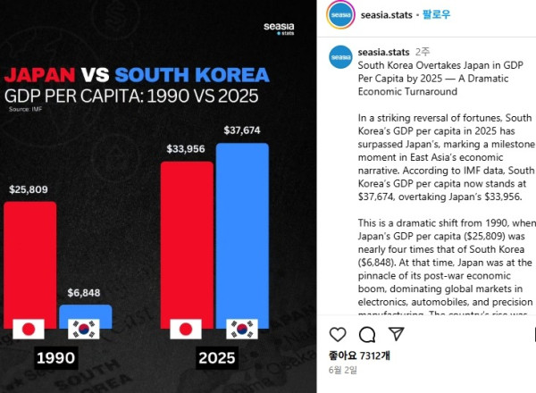 한국이 일본보다 더 부유해진것을 축하해주는 세계인들