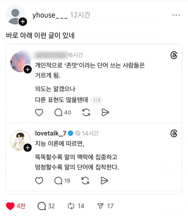 개인적으로 '존맛'이라는 단어 쓰는 사람들은 거르게 됨
