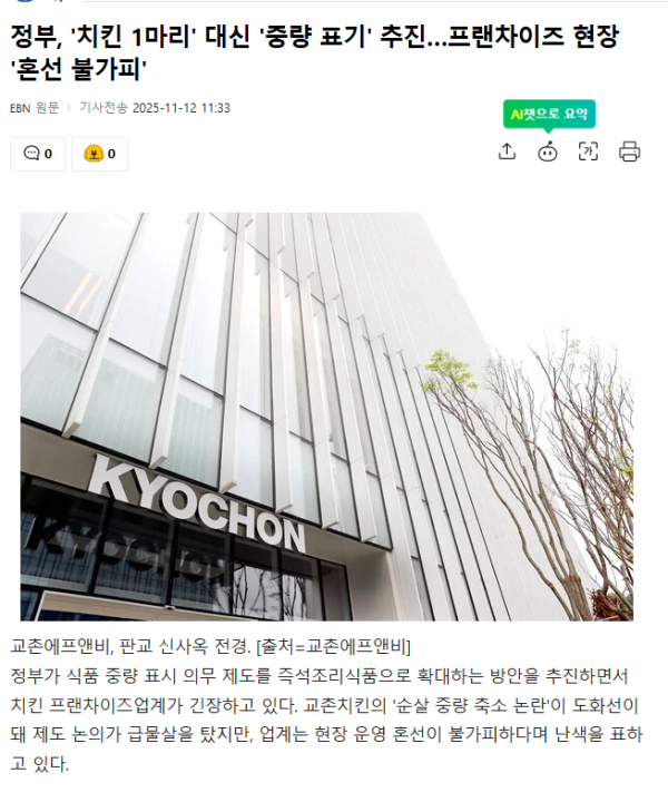 정부, '치킨 1마리' 대신 '중량 표기' 추진