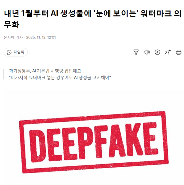내년 1월부터 AI 생성물에 '눈에 보이는' 워터마크 의무화