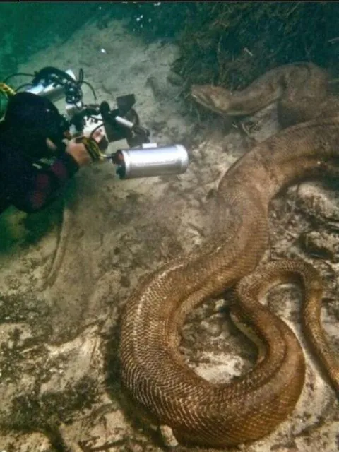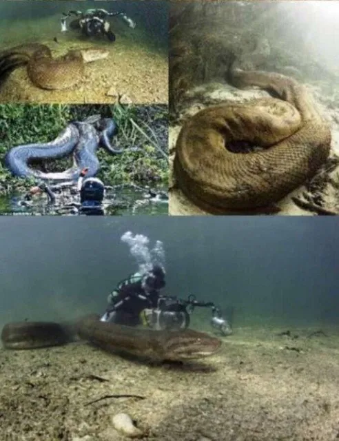 (뱀주의) 8미터 이상의 아나콘다 수중 촬영