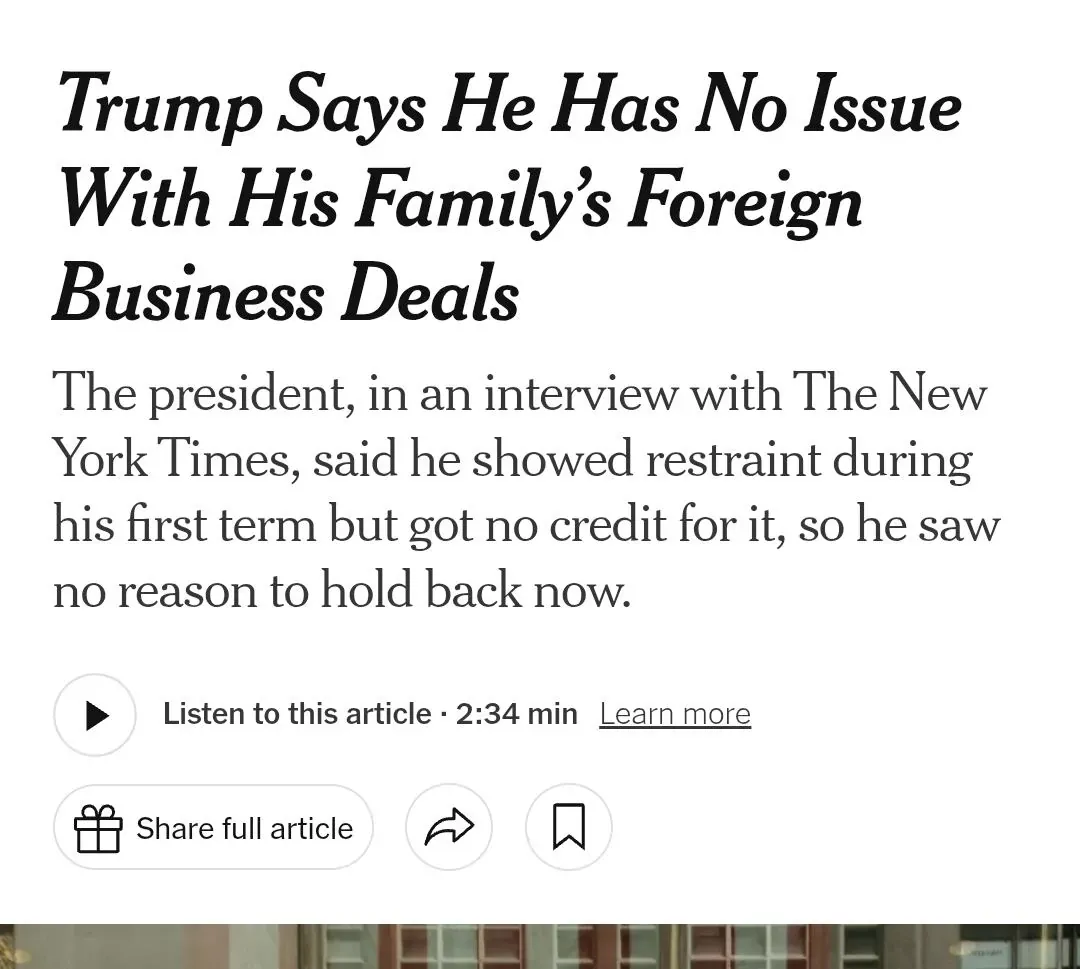 트럼프 ' 내 자식들이 내덕으로 돈버는게 뭐가 문제임? '