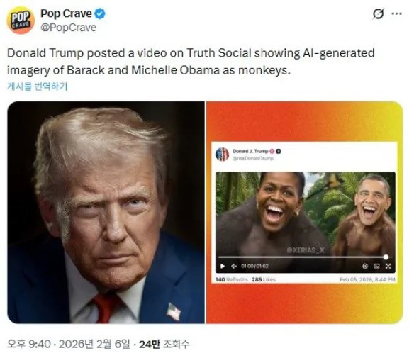 트럼프, 오바마 부부 인종차별 영상 사과 거부
