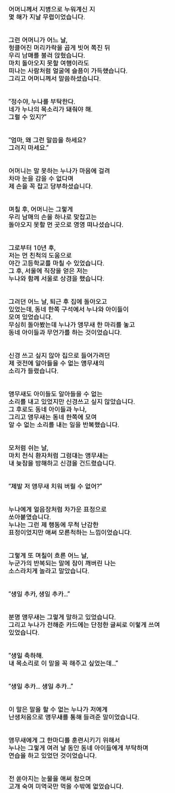 열람중 말 못하는 누나가 차려준 생일상  등급아이콘 레벨아이콘 커뮤관리자 02.06 128