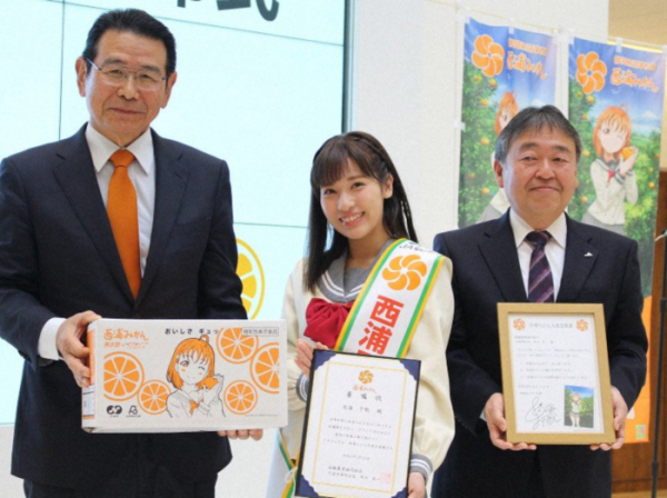 지역농협에서 나서서 타카미 치카를 '니시우라귤 홍보대사'로 임명한것